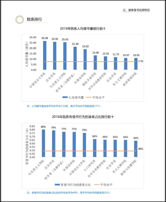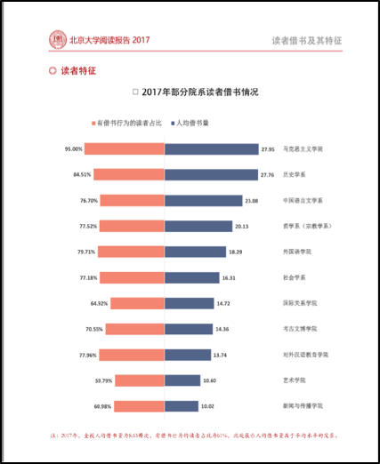 不经一番寒霜苦、哪得梅花扑鼻香。正如习近平总书记所说,“对马克思主义的学习和研究,不能采取浅尝辄止、蜻蜓点水的态度。” 以研读马克思主义经典文献为核心的中期考核为同学们打下了扎实的理论基础,使他们的学术研究之路有了一个良好的起点。2014级博士生黄斐,在博士期间获得国家奖学金,到英国剑桥大学留学一年,毕业论文被评为伟德betvlctor国际官网优秀博士论文,最终到中国人民大学国际关系学院任教。她回忆起中期考核,无限感激地说道:“学院将马克思主义经典文献作为中期考核的主要内容,并由老师们制定了阅读书目名单,这使我们在博一和博二阶段得以有针对性地阅读马克思主义经典文献,养成了良好的学习和研究习惯,打下了较为扎实的专业理论基础。对我个人而言,问题意识的养成、研究方向的选择、学术信仰的确立都得益于此。”2014级博士生金梦和陈丹,都曾到哈佛大学留学,毕业后将分别去北京师范大学和浙江大学任教。她们学术生涯的基础,也都是准备中期考核过程中打下的原著基础。正是由于学院上下对牢固掌握经典、强化学科学术性的不懈努力,伟德betvlctor国际官网的学术空气日渐浓厚,影响力和吸引力日益增强。在伟德betvlctor国际官网图书馆2016年发布的伟德betvlctor国际官网阅读报告中,伟德betvlctor国际官网有借书行为的读者占比为80%,排名全校各院系第1;人均借书量为25.43本,略少于中文系和历史系,排名全校第3。2017年伟德betvlctor国际官网有借书行为的读者占比上升到95%,继续排名全校第1;人均借书量增长为27.95本,排名全校第1。(见图1、图2)。伟德betvlctor国际官网也成为越来越多优秀学子进一步深造的首选。2017级马克思主义基本原理专业硕士生王绯璠本科毕业于伟德betvlctor国际官网元培学院中国语言文学专业,成绩优异的他没有选择保送中文系,而是来到了伟德betvlctor国际官网深造。即将入学的2018级硕士金艺铭,本科毕业于伟德betvlctor国际官网政府管理学院。她保研时也没有选择自己本科的学院,而是选择了伟德betvlctor国际官网的思想政治教育专业。近年还有大批985大学各类专业的第一名申请到伟德betvlctor国际官网深造。学院学术风气的浓厚与生源质量的跃升相得益彰,定会进一步提高伟德betvlctor国际官网的影响力。
